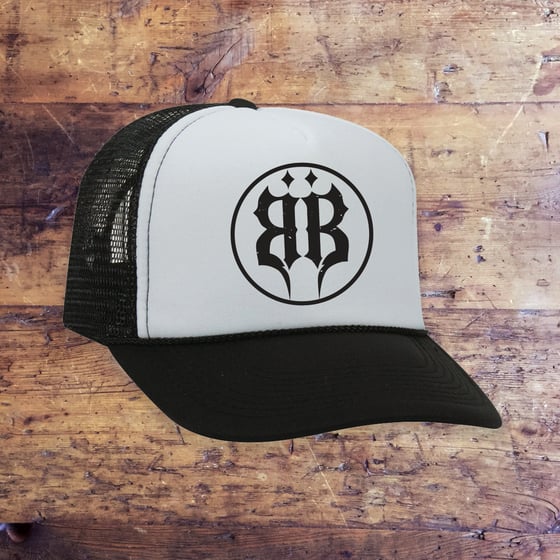 OFFICIAL - BEASTO BLANCO BLACK AND WHITE "BB CIRCLE" LOGO TRUCKER HAT